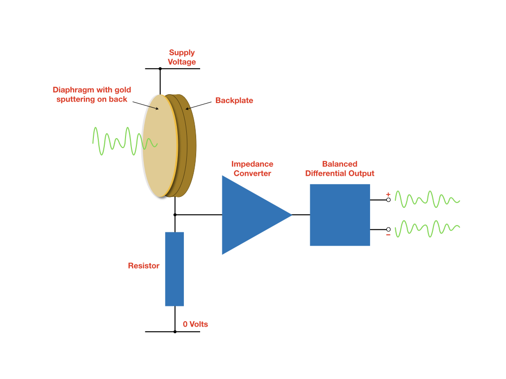 از آنجا که تغییر ظرفیت دقیقاً ناشی از حرکت دیافراگم است، در نهایت تغییرات ولتاژ خروجی متناسب با جابهجایی دیافراگم بوده و نسخهای الکتریکی از موج صوت میشود: