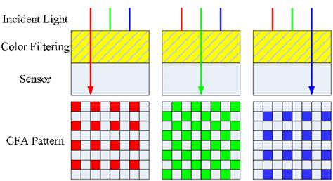 سنسورهای تصویربرداری ذاتاً قادر به تشخیص رنگ نیستند و تنها شدت کلی نور را اندازهگیری میکنند. به همین دلیل، برای ثبت اطلاعات رنگی، یک لایه بسیار نازک به نام آرایهٔ فیلتر رنگی (Color Filter Array – CFA) بر روی سطح سنسور قرار داده میشود.