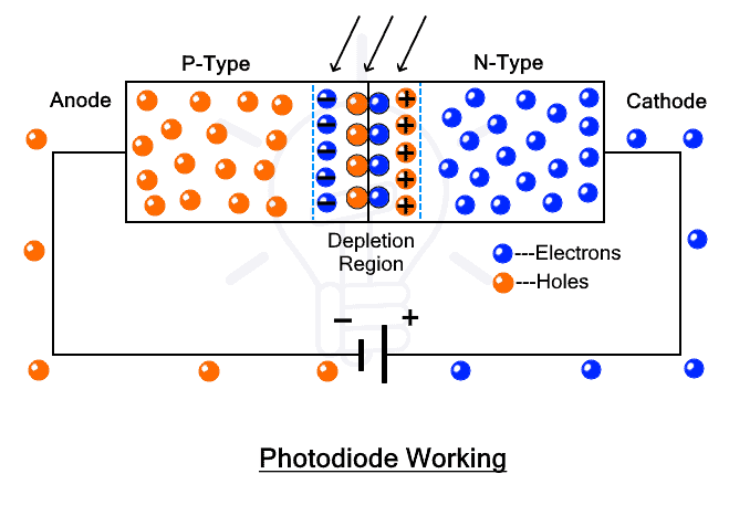 وقتی فوتون به ناحیهٔ تخلیهٔ (Depletion Region) دیود برخورد میکند: