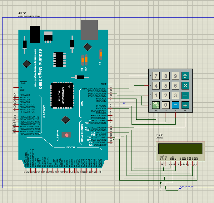 Keypad 4x4: برای دریافت ورودی کاربر. سطرها و ستونهای آن به پینهای دیجیتال ۶ تا ۱۳ متصل شدهاند.