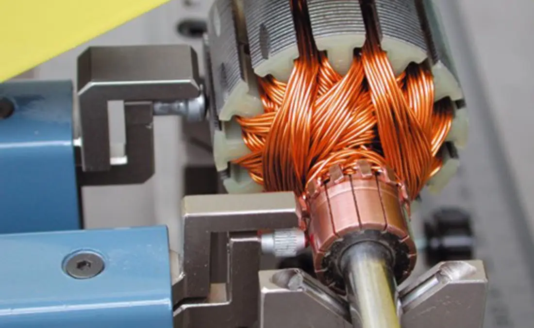 در مرحلهی بعد، سیمپیچهای آرمیچر به دور هستهی آهنی لایهلایهی روتور اضافه میشوند. این سیمپیچها از سیمهای مسی تشکیل شدهاند که در چندین حلقه پیچیده میشوند تا بتوانند بهصورت مؤثر با میدان مغناطیسی تولیدشده توسط استاتور برهمکنش داشته باشند.